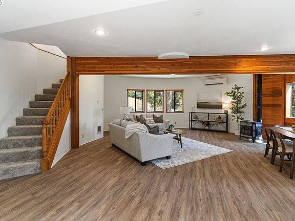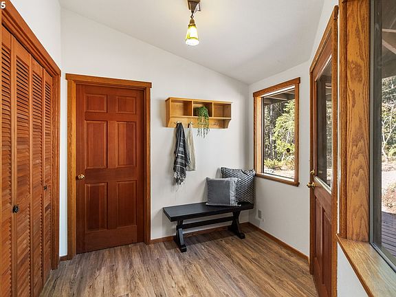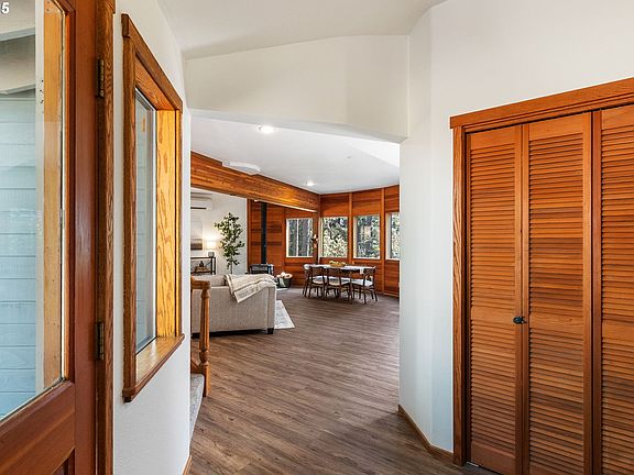 SIGNIFICANT PRICE REDUCTION OF $210,000! Seller is highly motivated. Ideal for multi-generation family, friends and/or rentals.An exceptional and unique property on 10+ acres with 3-4 different living spaces. Main house is two-round, open ceilings with skylights, connected by an octagon. 3-bedrooms, 2 baths, about 2,000 SF. Built in 1990, it’s been updated in 2025 with new paint, flooring, and countertops throughout. The kitchen has brand new stainless-steel refrigerator, oven/cooktop, microwave and dishwasher. There’s an abundance of counterspace, a large skylight, walk-in pantry, and built-in desk with upper wall cabinets. Off the hallway is a separate laundry room with washer-dryer; a door provides direct “mudroom” access to/from the foyer. The former llama ranch has a separate guest house with a loft plus an 850 SF deck engineered to support a yurt if desired. Another detached two-story building holds a 3-car garage below with a full 850 SF apartment above; could also be an Airbnb, or event center. There’s a large workshop and barn with six stalls leading to eight pastures. Next to it is a loaf shed with three bays. Two additional RV hookups are on the property: one with a cement pad. The large garden area has 8 cement-block-raised beds, a greenhouse, and a rabbit hutch. Nearby is a small building with a loft, which could be a she-shed, he-shed, teen bedroom, or bunkhouse. And there’s a large, walk-in chicken house with a small separate exterior door for egg collection made easy. The property also has mature Douglas Fir Trees and a small hilltop orchard. Water spickets are scattered throughout the land. The property entrance has a securely locked gate with wireless, remote operation. Located just 25 minutes from downtown Eugene and 10 minutes from downtown Cottage Grove. Photo 48 is a site map and shows locations of the buildings and features.