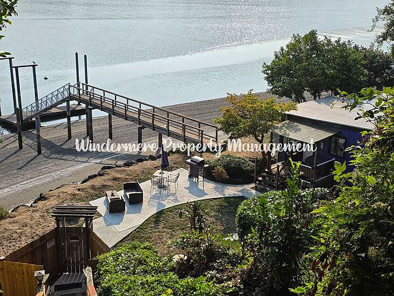 Welcome to this beautiful and fun waterfront property located in Bremerton, WA. This fully furnished, one-bedroom, one-bathroom home offers a unique blend of comfort and style. The home features a ductless mini-split heat pump for efficient heating and cooling, and a cozy woodstove for those chilly nights. The covered back patio and large front patio provide ample outdoor living space, perfect for entertaining or simply enjoying the serene waterfront views. The private dock adds a touch of exclusivity and convenience for water enthusiasts. The property also boasts a private hot tub, perfect for unwinding after a long day. The home comes with a bar complete with stools, adding a fun and social element to the space. Landscaping is included, ensuring the property maintains its curb appeal year-round. This home's convenient location offers easy access to local amenities, making it a perfect choice for those seeking a blend of tranquility and convenience. Experience the best of waterfront living! Home is located down an 86-step staircase. All single story living and a dedicated desk space for working from home. One dog under 40lbs allowed with owner approval and additional deposit. Contact us for a showing today!