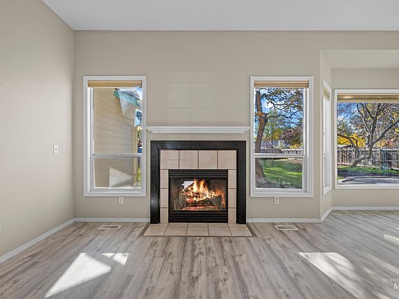 This rare 4-bedroom home features a split floor plan, 2 bathrooms, 3 car garage, and huge backyard set in an exceptional Northwest Boise location. Easy access to shopping, dining, parks, schools, and the Boise Foothills to the north as well as the Boise River and Greenbelt to the south. The interior illuminates in natural light from the living room windows, dining area bay windows, glass sliding door, and skylight in the kitchen. Vaulted ceilings enhance the openness of the home, while you can immerse yourself in the charming sounds of a natural wood-burning fireplace where the gentle crackling and popping creates a warm and inviting atmosphere. The beautifully landscaped yard boasts mature trees that offer seasonal beauty, along with side yard areas providing convenient storage for recreational toys and firewood, with additional enclosed storage in the charming shed located in the backyard. The fully fenced backyard is perfect for entertaining, playing yard games, or creating the garden of your dreams. Recent updates include a brand-new dishwasher, new flooring throughout, countertops, paint, garbage disposal, gas range, microwave, HVAC system, water heater, and smoke and carbon monoxide detectors.