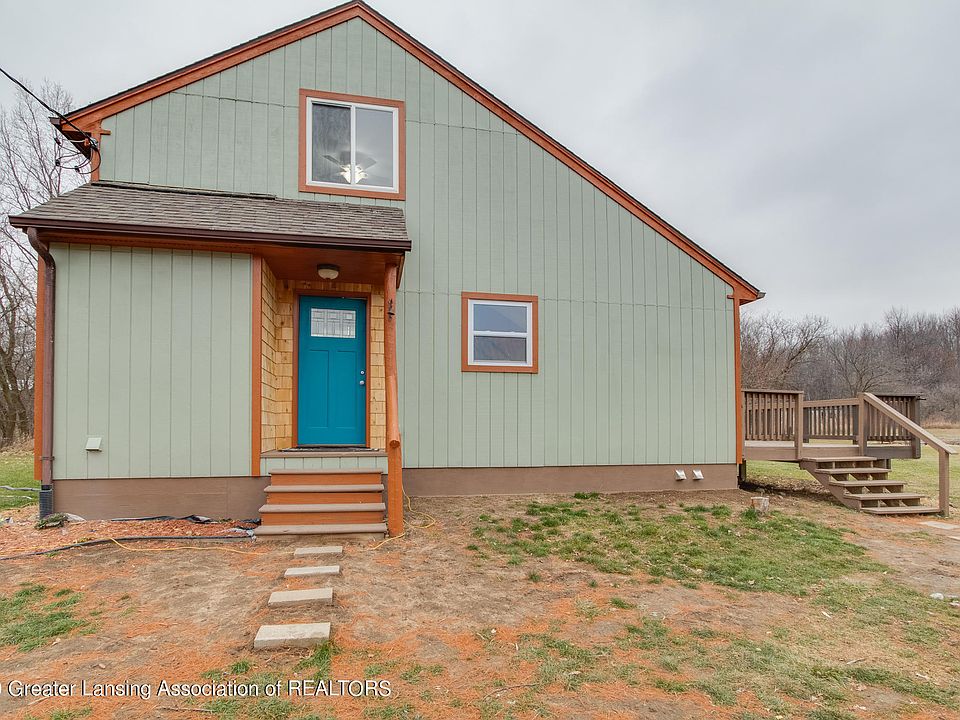 A MUST SEE! CHARMING COUNTRY HOME SITTING ON 4 ACRES. 3 BEDROOMS, (3RD BEDROOM CURRENTLY USED AS LAUNDRY/OFFICE SPACE). WALK-IN CLOSET IN PRIMARY BEDROOM. 2 FULL BATHS, LIVINGROOM HAS VAULTED CIELING. 1ST FLOOR LAUNDRY, PATIO DOORS LEAD OUT TO LARGE DECK OVERLOOKING BACK YARD WITH SEVERAL FRUIT TREES. FINISHED AND HEATED 2 CAR GARAGE WITH CEMENT FLOOR, LARGE WORK BENCH AND AN OFFICE SPACE. WOOD BASEMENT READY TO BE FINISHED. ALL APPLIANCES INCLUDED (REFRIGERATOR, STOVE, MICROWAVE, WASHER DRYER).