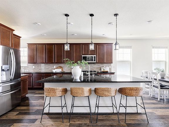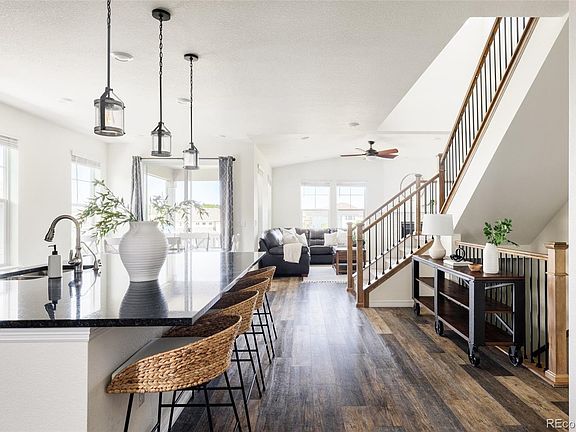 Beautifully maintained home in the Whispering pines community backing to a ravine. As you approach, you'll be greeted by a spacious covered front patio great for enjoying the Colorado sunshine. Step through the front door to discover modern luxury inside and a large open main living area.To your left you’ll discover the main floor study—a private retreat for working from home. Entertaining is a breeze as the living area flows naturally from the kitchen, dining and living space. The kitchen features plentiful shaker cabinetry, stainless steel appliances including gas cooktop, granite countertops, stylish backsplash tile and a large island that serves a center of connection. The spacious pantry provides ample storage space to stay organized and the adjacent mudroom provides convenient access to the garage. The large dining area opens up to a covered back patio, creating an inviting space for gatherings and relaxation. The living room centers a modern gas fireplace. There is also a bed and bath on this level. Venture upstairs to discover a loft, 2 secondary bedrooms, a hall bath, a convenient laundry room and the luxurious primary suite. The primary suite is a true sanctuary, boasting dual vanities, a glass-encased European designed shower, and a generously sized walk-in closet. This home is bathed in natural light and can be easily shaded thanks to window coverings throughout. There is also a rainsoft water softener and whole house humidifier. The spacious backyard creates a serene outdoor oasis. Equipped with an unfinished basement with rough-in plumbing, offering endless possibilities to suit your needs. This exquisite home offers exclusive access to the Outlook Community Center, which features a pool and clubhouse, perfect for socializing and relaxation. Embrace the serene beauty of nature with miles of scenic trails, providing a peaceful retreat from the hustle and bustle of everyday life. Situated within the highly sought-after Cherry Creek Schools district