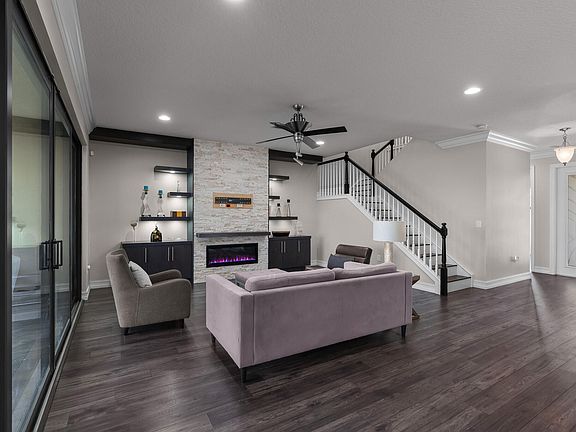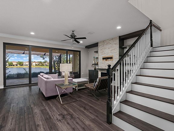 Welcome to this beautifully updated 4-bedroom, 3-bathroom home with stunning, deep lake views in the highly sought-after gated community of Tuscany North. Step inside to find a spacious, open-concept layout featuring a chef's kitchen with sleek white shaker cabinets, double islands, and high-end finishes throughout. The large loft offers a perfect space for relaxation or entertainment, while the generous laundry room is conveniently located upstairs. Enjoy the luxury of resort-style living with access to an amazing clubhouse, perfect for gatherings and leisure. This home combines modern elegance with picturesque views and an exceptional community. Don't miss this opportunity!
