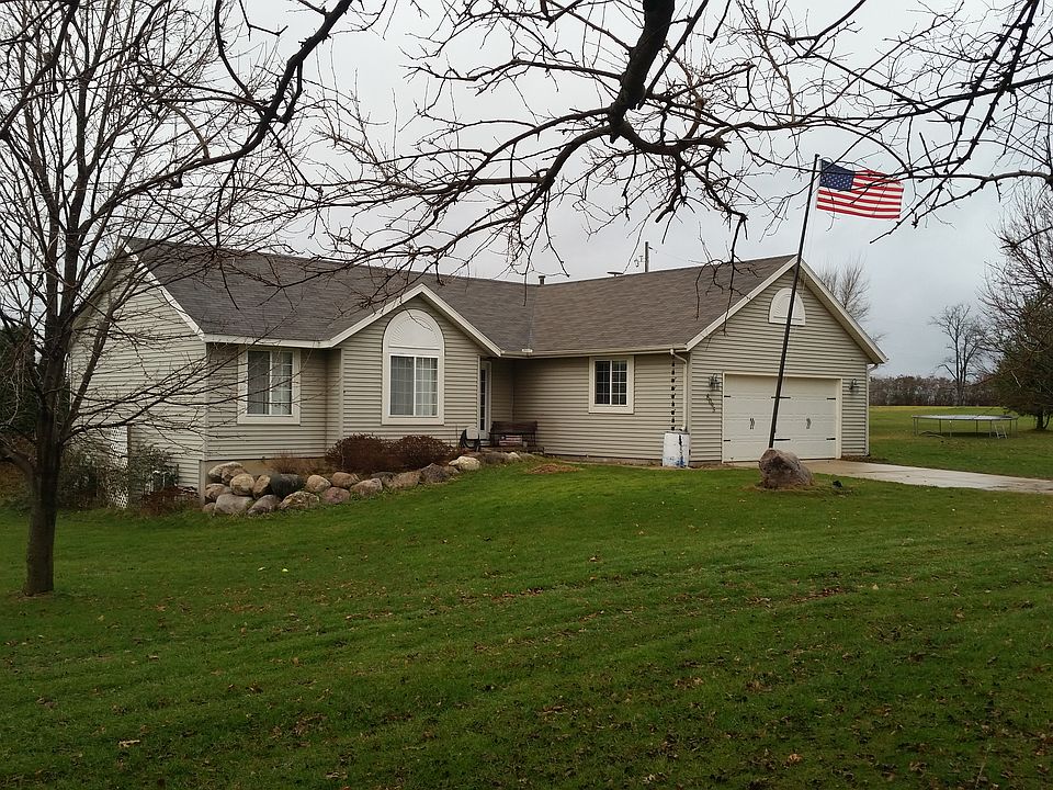 A ranch home with an open floor plan and cathedral ceilings. The basement is finished with a bedroom and a shower and sink is setup as well. There is a three season porch on the back that exits to a 16 by 17 Deck. There is a 32x32 pole barn width 13 foot high ceilings wired for 220 volt. Attached is a 16x32 lean-to for additional storage. There is plenty of lighting and a small wood stove. Along the road is a rock wall that was built with fieldstones scavenged by my dad and uncles when they were younger. Is only about two miles to i-96 Clarksville exit. And about 20 miles to Grand Rapids.