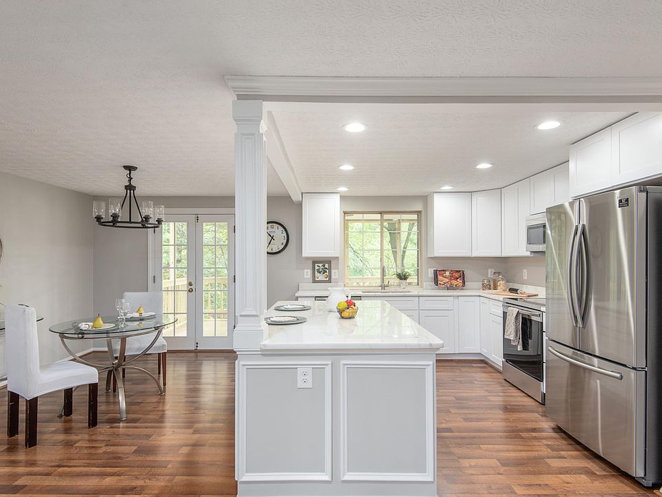 Welcome Home!! This beautiful fully remodeled home is located in the South County pyramid of Newington Forest! The home features 5 bedrooms and 3 full baths. Upstairs features renovated kitchen with custom white cabinets, large island, stainless steel appliances, and granite countertops. The separate dining area leads to a beautiful screened-in porch that overlooks a large fenced in wooded lot. The master bedroom has its own bathroom. All 3 full bathrooms are custom tiled. Downstairs features a large living area with fireplace. 2 more bedrooms and a full bath and a separate laundry room/storage that leads to the backyard. Plenty of parking. Don't miss out on the beautifully updated home