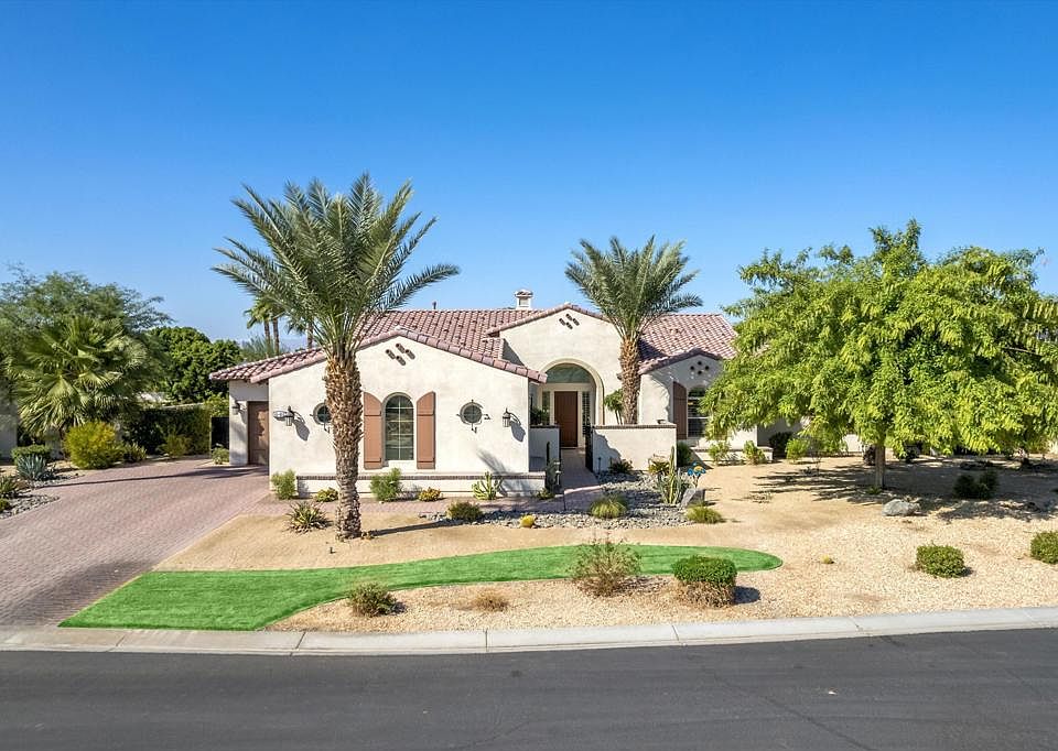 Located within the exclusive gated community of Stonefield Estates--home to just 25 estate properties--this stunning 3,405 sq. ft. residence offers bright, open living spaces with sophisticated contemporary finishes.Upon entry, you're welcomed into a spacious great room featuring soaring ceilings with exposed real wood beams, a cozy fireplace, and built-in surround sound--perfect for relaxing or entertaining.The gourmet kitchen is a chef's dream, showcasing abundant maple cabinetry, Caesarstone countertops, a large walk-in pantry, generous dining area, and an oversized island. The premium appliance package includes a Sub-Zero refrigerator, Wolf range with double ovens and vent hood, and an Asko dishwasher.The expansive Primary Suite is a true retreat, highlighted by coffered ceilings, crown molding, and a spa-inspired bathroom with dual vanities, a soaking tub, makeup vanity, and an enormous walk-in closet with custom built-ins.A spacious Junior Primary Suite is privately located on the opposite wing of the home, featuring its own luxurious bath with dual vanities and a walk-in closet. The third ensuite bedroom also includes a walk-in closet and private bathroom.Step outside to your private 1/2-acre resort-style backyard, complete with a saltwater Pebble Tec pool, raised spa with waterfall feature, covered patio, built-in BBQ, custom lighting, and plenty of space to entertain.Additional features include:Versatile flex space (currently used as a formal dining area)Porcelain tile flooring throughoutSoft water systemPlantation shutters3-car garage with epoxy flooringAll located just minutes from the Empire Polo Grounds--home to the world-renowned Coachella and Stagecoach music festivals.Call today to schedule your private showing!