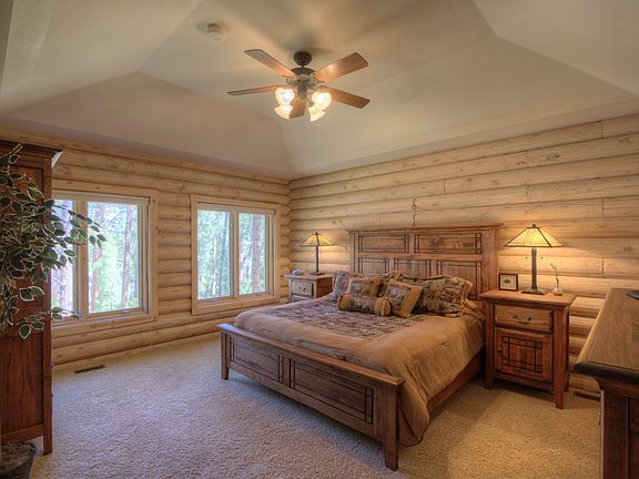 Entertainers delight with amazing indoor and outdoor areas to take in the privacy, serenity and peacefulness of this lovely golf course community. This raised ranch is perched in the trees but still has plenty of flat land for BBQs, picnics, horseshoes, gardening, etc. All of the things you have come to expect in a custom log home and some things you don't including an amazing great room with vaulted ceilings, floor-to-ceiling stone fireplace, open kitchen with Gas cooktop, two sinks, sub zero refrigerator, double Electrolux ovens and an island that seats 6! Master suite and two guest bedrooms on the main floor and an over-sized family room, half bath, garage and enormous storage area in the walkout.