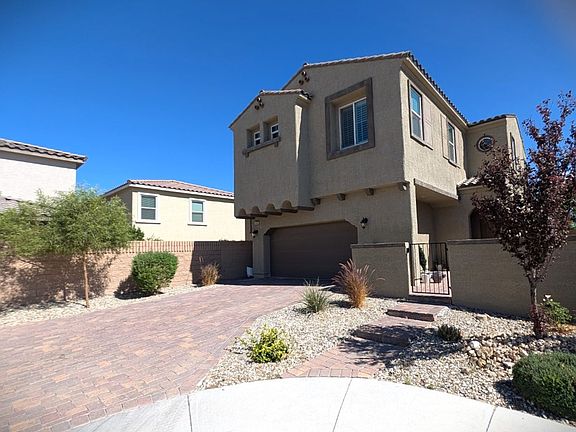 Located in the Skye Canyon Master Plan and set within a private gated community, this beautiful home offers style and functionality throughout. The open-concept layout connects the living, dining, and kitchen areas, creating a comfortable flow that overlooks a fully landscaped backyard. The backyard is lush and greenlike having your own little park at home. Upstairs includes a versatile loft space, two bedrooms joined by a Jack & Jill bathroom, and a spacious primary suite with plenty of room to relax and unwind.