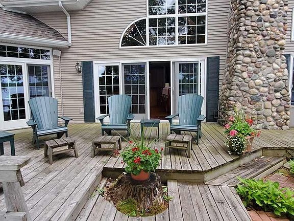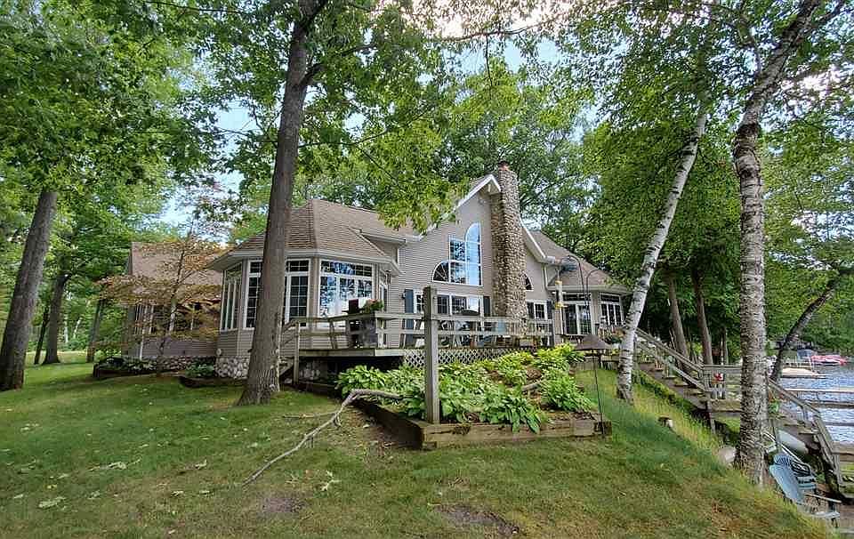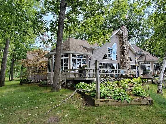 OMG! LOCATION! one of the premiere properties on All Sports Long Lake!Incredible,like a park,mature trees,landscaped! 163' on water! All on a paved road, and black top driveway! The lake shore is awesome with great sand beach, protected by sea wall, metal and stone too! The view! every sunset a postcard! Panoramic views!enjoy a full day of sun at the lake!water level patio,room for everyone to lounge all day and a stone fire pit for at night.multi More decking water side of home, where everyone can gather anytime for great views of water ,with some mature beautiful shade trees. The maint.free exterior is top notch ,vinyl siding and field stone trim! Speaking of field stone, look at that stone fireplace! beautiful from inside and out. Home has incredible oak wood floors through out, and ceramic tile too.The solarium has incredible pecan walls! and wet bar.Windows in this house are abundant! every room, all glass, towards water, just incredible views every where indoors! Anderson windows and door walls and french doors.This home is quality at every turn.Formal dining room that again boasts all glass lake views! The open liv rm/great room with cathedral ceilings, is like a picture in a magazine! Kitchen is open concept with wide open view of rest of house and lake! never feel cut off from family and guests while in this kitchen, Tons of cupboards ,fine granite counters. Built in oven! a chefs dream kitchen. plenty of stools at bar for friends and family to chat with whoever is cooking! Main floor, presents master bedroom with walk in closet and master bath w jetted luxury tub. very roomy guest bedroom, and 3rd bedroom currently used as an office, A full bath here AND a powder room for guests. Large utility room with lots of storage and door out to access garage.Upstairs there is even more room! Huge dormitory style room,even w 3 queen size beds up there, not crowded at all, bath w shower.Skylights too.so much wont fit in ad,can sell as turn key. welcome home