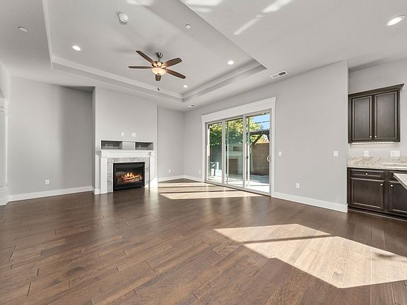 Cozy gas fireplaceSleek granite countertopsStainless steel appliancesHardwood flooring