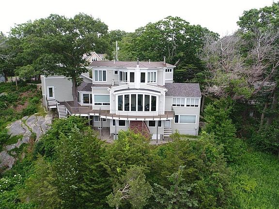 Spectacularly sited home on Little Harbor with panoramic views of the ocean, the ever-changing waterscape and 5 acres of conservation land. Designed by renowned Boston architect in harmony with its surroundings and completely renovated by a talented team of craftsmen to optimize views and light and create a modern "Scandinavian" look. Eleven rooms of generous proportions with four bedrooms and three full baths. Living Room with large curved windows, a 10' tall barrel ceiling with gentle lines repeated throughout the house. Danish wood stove and doors to deck. Dining area is open to the kitchen with maple cabinets, granite counter, curved raised bar and stainless appliances. Desirable first floor bedroom with full bath. Mid-level is a small bedroom/office/exercise room. Second floor Master Suite with balcony. Full Bath has tub with water views, separate shower and walk-thru custom closet. Lower Level Family Room, two bedrooms, full bath and laundry. 2 car garage. Town Sewer.