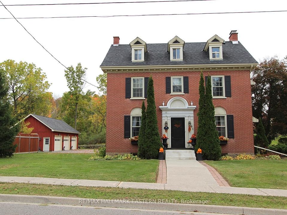 | CAMPBELLFORD | BARNUM HOUSE | Step back in time with this locally significant treasure, Barnum House, a stately Georgian-style brick home that beautifully blends historic charm with modern comfort. Built in 1931, this 2 1/2--storey residence showcases classic Colonial Revival architecture, with its symmetrical façade, elegant proportions, and understated detailing. Inside, the timeless centre hall plan offers a graceful flow between formal and family spaces, ideal for both entertaining and everyday living. Thoughtful updates enhance the home's livability, including a spacious family room addition (circa 1985) and a modern three-car garage (2007) that complement its heritage character. With 3+2 bedrooms, there's ample room for family or guests. Third floor is currently being used for storage. Set on a generous half-acre lot, the property offers privacy and green space rarely found in town, all within walking distance to shops, restaurants, and the scenic Trent-Severn Waterway. A rare opportunity to own a piece of local history, lovingly preserved and ready for its next chapter.