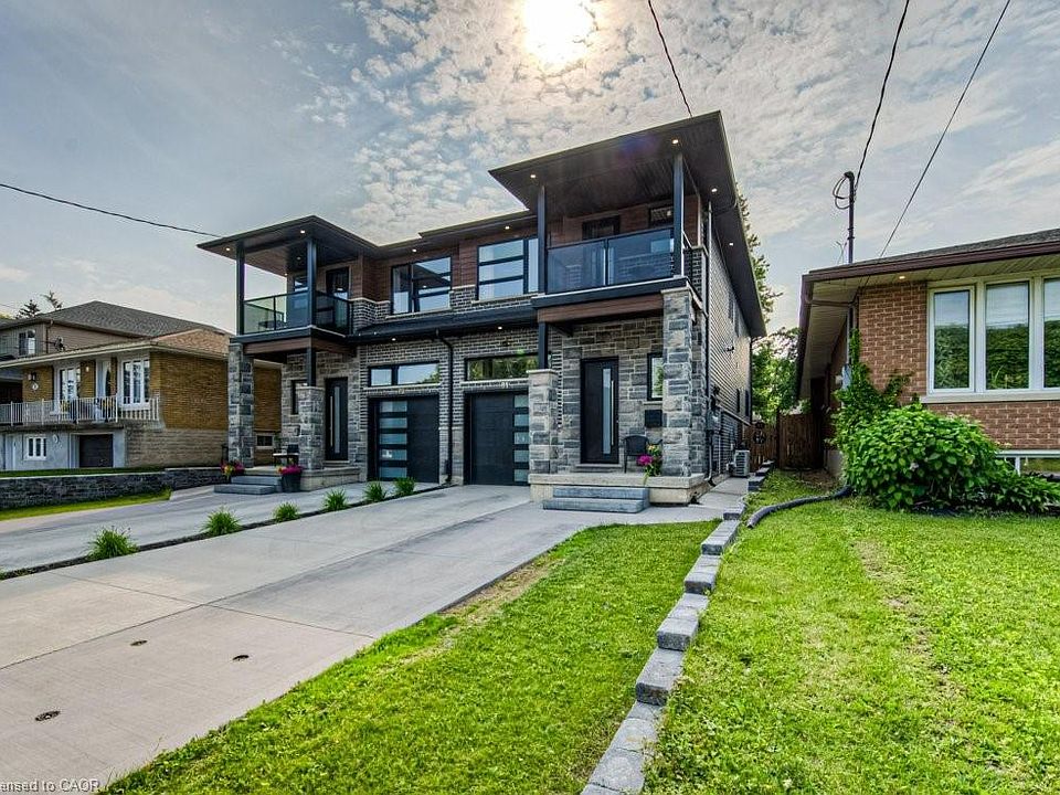 Step into this beautifully crafted, custom-built legal duplex that perfectly blends modernity with thoughtful, functional design and income potential. Built only 3 years ago, this modern stunner spans over 3,100 sq. ft. total space and offers the flexibility to comfortably share space with extended family or benefit from a mortgage helper—while maintaining privacy with separate entrances. The main floor features a bright, open-concept layout anchored by a large island, stainless steel appliances, sleek cabinetry, and a generous walk-in pantry. 9’ ceilings, upgraded 8’ doors, and 8’’ baseboards elevate the living space with a refined finish. Upstairs, you'll find three spacious bedrooms, upper-level laundry, and a large family room that opens onto a glass balcony. The primary bedroom includes a luxurious ensuite with a freestanding bathtub, sauna, and walk-in tiled shower. Outside, the rear yard features a concrete patio and walkway and can easily be subdivided into a fully fenced yard. The lower-level unit which is over 1,000 sq. ft. has an excavated garage for extra space, a separate furnace and ductwork, a large bedroom with oversized windows, a tiled shower, private laundry, and a full kitchen. The party wall has upgraded insulation, Sonopan soundproofing with resilient channel on all levels. Built with intention, high-end finishes, and quality throughout, this home is perfect for families or buyers seeking a smart investment in a family-friendly community—close to highway access, schools, shopping, and parks.