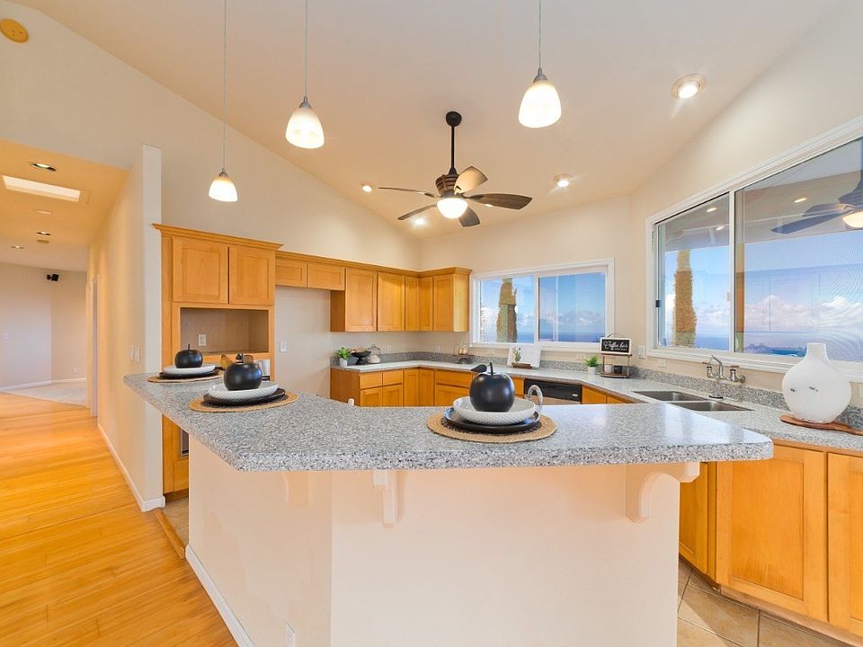 A rare opportunity to own a home in Hale Ke’e Ke’e subdivision. Located in central Kealakekua, minutes from schools, Kona Community hospital, post office, restaurants and shopping. This expansive home features sweeping views all the way down to Kailua Bay and year round sunsets. The sunken in living den, outside bar, and large lanai are perfect for entertaining guests. You’ll be even more pleased to see the main bedroom and bathroom en-suite, with a media/entertainment room. Relax in your tub while you watch the sunset, or enjoy a movie night, the possibilities are endless. Fully paid Vivint alarm system.
