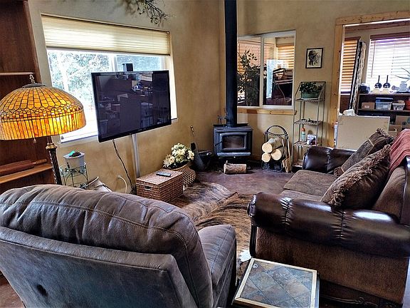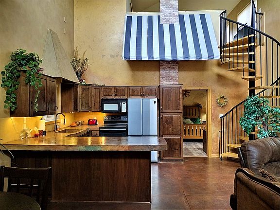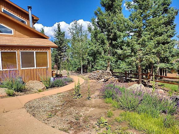 FSBO this is a unique1,300 square foot home on a southern-facing, spectacular lot with 2 bedrooms and 2 bathrooms. This home has just come on the market and is valued at $458,900. Come see the dramatic vaulted ceilings and circular staircase, nestled atop Ranch Estates with a Tuscan Villa look and feel. It's a perfect year-round or getaway home The number of amenities is vast for a small home: The home was built by a passive solar home builder Heating includes several systems, in floor with thermal heat storage, passive solar, hot water heat, electric base board, and wood stove. The water is held in a 3,000-gallon cistern – a well drilling permit is in hand should the buyer choose to drill. The Kitchen has brand new walnut cabinets, concrete counter tops and a huge pantry cabinet, and the sink is a deep, single-bowl hammered copper. Space for washer or dish washer. The upstairs has close-up views of Pikes Peak and a Steam shower, in the bathroom. Downstairs entry is prime for plants and growing containers. Large patio has a moss-rock boulder retaining wall. Dish or Point-to-Point internet is available. TV antenna brings in over 30 local channels. Wood blinds Visits from Deer, fox, turkeys, bears & moose HOA is for fire and roads, Ranch Estates is asphalt Propane Tank included with the house Friendly Neighborhood Hospital nearby