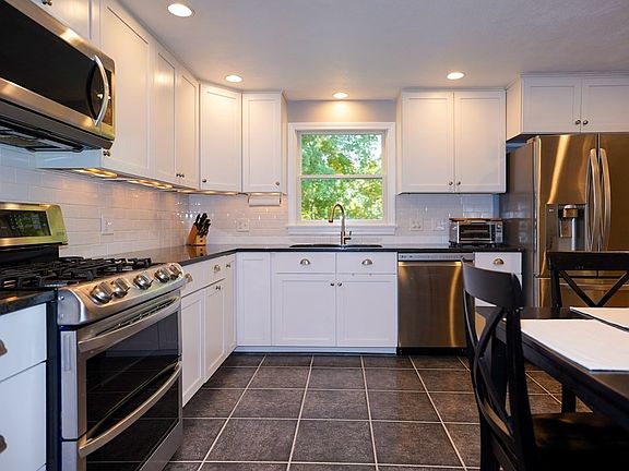 Welcome home to this updated property in a fantastic East Holliston neighborhood! Lovely eat in kitchen w/ granite counters, ss appliances (new in last 3 yrs), backsplash & double oven leads out to sizable deck & backyard. Living & dining rms w/ beautiful hdwd flrs & picture window. Down the hall find carpeted master en suite w/ double closet & full bath w/ shower & new vanity. Two sizable bedrooms: one w/ carpet, the other w/ hdwd. Main bath w/ white subway tile, new vanity & toilet, tile floor & shower/tub. Downstairs - a gorgeous family room w/ mini split & custom mantled gas fireplace. Fantastic home office w/ carpet & built in book shelves. Laundry & half bath w/ tile floor & new vanity. Lower level updated 2009. Excellent storage space & closets. Two car garage w/ newer doors & openers, Reed's Ferry wood shed, new roof 2011, mini-splits 2017, exterior paint 2020, glazed all bath tile 2020, new landscaping 2018. New septic, amazing commuter location, great neighborhood!