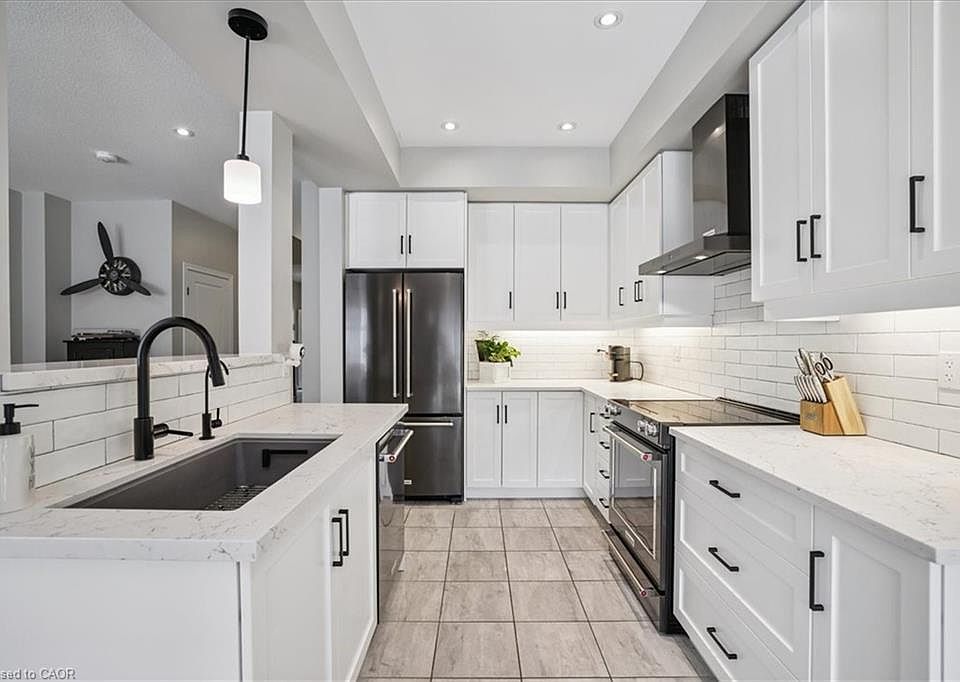 Welcome to 81 Beasley Grove - Upgraded Freehold Townhome on a quiet cul de sac, in desirable Meadowlands in Ancaster! Located on a quiet, family-friendly street, this beautifully upgraded freehold townhome offers 3 bedrooms, 3 bathrooms, and approximately 1,600 square feet of thoughtfully designed living space in the desirable Meadowlands community. This home is packed with premium features, including quartz countertops throughout, California shutters, and striking custom board and batten accent walls that add a designer touch. Enjoy the glow of pot lights in the kitchen, living room, and upper hallway/loft, and unwind by the cozy gas fireplace. The oak staircase adds timeless character, while the gas line in the backyard is perfect for BBQs and entertaining. You'll also love the professionally installed irrigation system in both the front and back yards, keeping your lawn and gardens lush with minimal effort. The home is equipped with a Beat Recovery Ventilation (BRV) system, ensuring fresh, filtered air and improved energy efficiency year-round. Upstairs, you'll appreciate the convenient second-floor laundry and a spacious loft ideal for an office, playroom, or reading nook. The basement offers a bathroom rough-in, giving you flexibility for future development. Enjoy the perks of freehold living with no condo fees, in a peaceful neighborhood close to top-rated schools, parks, shopping, and transit. Don't miss your chance to own this turn-key gem at 81 Beasley Grove - book your private showing today!