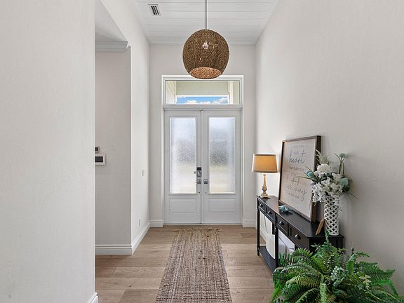 This is a custom-built home featuring impact doors and windows, 14 ft ceilings, 8-foot solid wood interior doors throughout, plantation shutters, and remote-controlled blinds on the sliders. The interior also boasts California closets, a walk-in pantry, and wide wood plank flooring throughout.The exterior includes an oversized 2.5-car garage, a saltwater pool with a sun shelf, and a private, fully fenced backyard with lush tropical landscaping. Enjoy stunning sunsets with its desirable western exposure. This 2,581 sq ft home is truly a steal.
