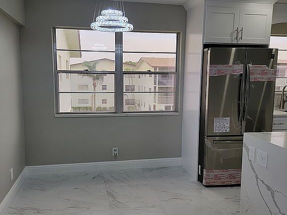 Must see beautiful renovated 4th floor 2 bed 1 1/2 bath. Dramatic, stunning design features thru/out. Exquisite lighting, Kit stunningly remodeled w/ loads of natural light, seated breakfast bar, custom cabinets, quartz back splash and counter tops, stainless-steel appliances, ample counter space & storage, gorgeous ceramic
