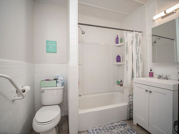 Modern bathEat-in kitchenHardwood floorsStainless steel appliancesGas range