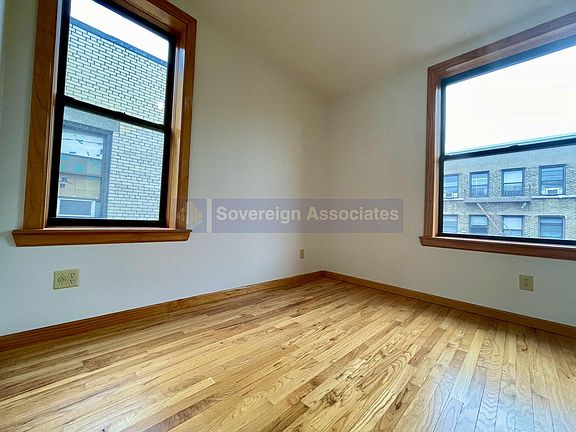 Renovated two-bedroom in a walk-up building on Cabrini Blvd and the 180s. The long entrance foyer has an extended wall of exposed brick. There are hardwood floors throughout and high ceilings. This top-floor apartment gets a lot of sunlight on a bright day! The kitchen has a lot of cabinets for storage and a good amount of counter space. Fairly new appliances. Separate from the main living area.