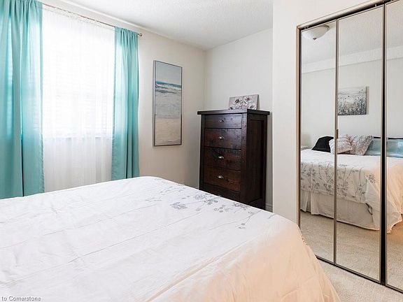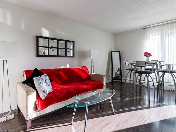 Welcome to this top floor, 1 bedroom, 1 bath condo in the heart of the Corktown neighbourhood of Hamilton, offering beautiful south facing views of the escarpment. This space has a large bedroom with a good size window to bring in natural light and offers plenty of room for a queen size bed, dresser and side tables. The galley kitchen opens to the dining area that flows into the spacious living room with sliding glass doors out to a private balcony, bringing plenty of light and beautiful views to the space. The condo not only has 1 privately owned, underground parking spot, but also offers plenty of visitor parking. Conveniently located close to hospitals, schools, parks, restaurants, shopping and public transit making this condo the perfect place to call home.