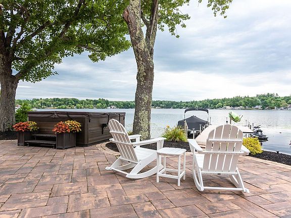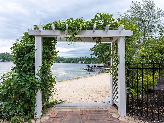 This magnificent waterfront home offers luxury interior features and resort style outdoor living space. Lounge by the inground saltwater pool with waterfall, step off the stone patio through the arbor to your own beach or sit in front of the custom stone outdoor fireplace and enjoy the lake views. Inside Brazilian wood floors are underfoot throughout except inside the 4 bathrooms that offer tile floors. The master suite offers vaulted ceilings, French doors opening to a balcony overlooking the water. Adjoining master bath has a soaking tub, glass shower & opens to a walk in closet. An open floor plan ties in the kitchen, living room & dining room all with beautiful views of the lake. The living room has a cathedral ceiling, gas fireplace and French doors opening to a lakeside balcony. The central kitchen has granite counters, stainless steel appliances, sit up breakfast bar & gas range with stainless steel vent hood. Adjacent to the kitchen walk through a sitting room complete with built in cushioned bench seats to the 4 season porch overlooking the water. The lower level offers a full 2nd kitchen, game room & walks out to the stone patio. This is a beautiful home finished with quality features and attention to detail located on the waterfront for the discerning buyer.
