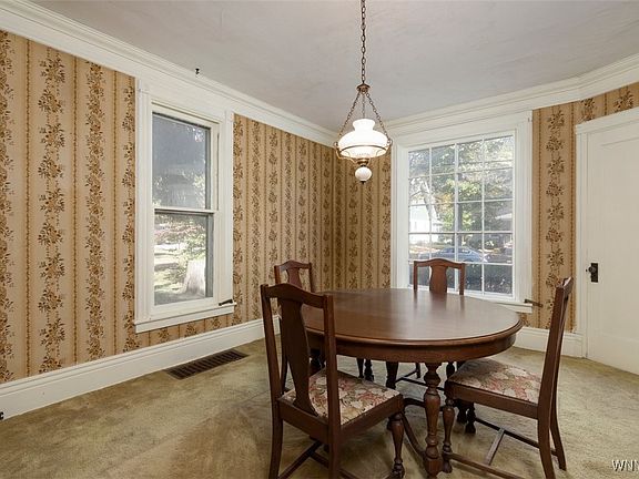 Open Sunday 10/19 1-3pm. Nestled on a quiet street, this spacious 3+ bedroom, 2 full bath home offers over 2,400 sq ft of classic charm and potential. Built in 1866, it features beautiful architectural details throughout — including elegant baseboard and crown molding in the living and dining rooms. Hardwood floors lie beneath most of the carpeting, waiting to shine again. Additional features include central air, two fireplaces, and breakfast room. The home sits on a large village lot, providing plenty of outdoor space for gardens, play, or relaxing in the shade. With its generous rooms, period character, and inviting layout, this property is ready for your vision and updates. A wonderful opportunity to bring new life to a timeless home — full of history, charm, and promise.