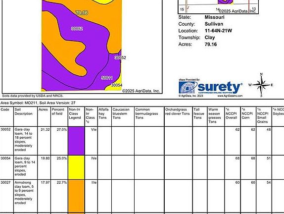 81 ac Sullivan County being split off of 165 ac, approximately 58 ac tillable owner willing to sign a 3-year lease for $250 an acre. The 165 ac has a hunting lease in place for 2025 deer season paying $5500 per year. Priced at $5200 per acre