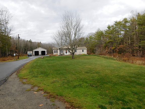 Stunning contemporary Ranch on a dead end road is much larger than it appears at 2400 square feet . Private lot, plenty of room for gardens , situated beside Hermon mountain, ponds and trails. 3-4 bedrooms, 2 full baths, office, HUGE family room in basement w knotty pine. All bedrooms are good sized w ample closets. Drop dead gorgeous kitchen w granite counter tops, lots of cabinets, big breakfast bar. Dining room. Glassed in sunroom w peekaboo window into kitchen. LG, bright and sunny living room w vaulted ceilings and skylights plus sgd to rear yard. Newer appliances, windows, flooring, paint, siding, etc. Walk out basement w storage. 3 heat sources w wood boiler, hwbb furnace and pellet stove. tarred driveway. Covered porch. 1st floor laundry. 200 amp service. Massive heated 4 car garage w workbench. Call now before it's to late !