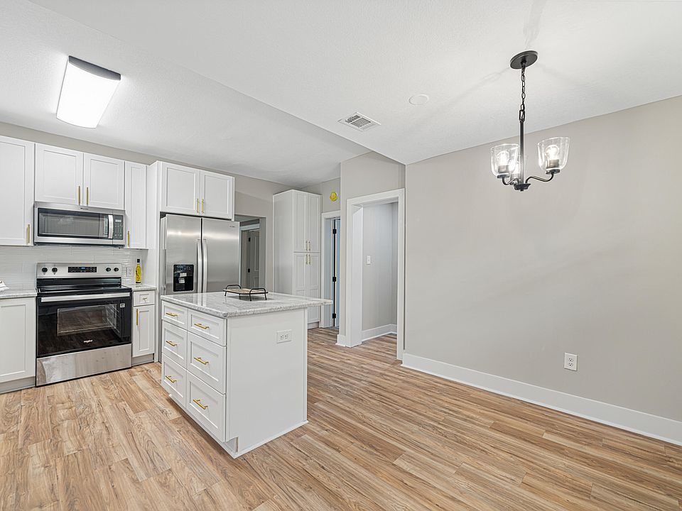 Spacious islandGranite countertopsAll-new windowsBrand-new wiringGorgeous new kitchenStainless steel appliances