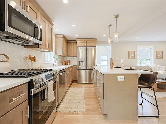 This home has been Renovated Top to Bottom! Featuring 3 Beds, 2 Baths, 1440 sq. ft., much of this home is BRAND NEW, including – Roof, Windows, Siding, Heating & Cooling Systems, Tankless Water Heater, 200 amp Electric Service, Kitchen, Bathrooms, HW Floors, Recessed Lighting, Gutters. Bright, Open Concept Kitchen/Living Room and Designated Dining Space. Gorgeous Kitchen w/Island, Stainless Steel Appliances, Gas Cooking, Quartz Countertops, Subway Backsplash. Beautifully constructed bathrooms. Sunroom with Vaulted Ceilings offers an additional living space. Sizable 2nd floor Bedrooms, both with Walk-in Closets. Deck overlooking Fenced-in Backyard perfect for entertaining including. 660 sq ft of basement space for storage. Danvers Municipal Electric resulting in cheaper utilities. Minutes to shopping, restaurants, schools and major highway. Nothing to do but move in before the Holidays!