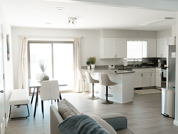 This is a fully furnished rental. The kitchen comes with an 8 piece dining set, pots and pans, cooking utensils, keurig and a stash of coffee, and anything you might need for any cooking or entertaining needs for your stay. There is a washer and dryer, and 3 queen memory foam beds. The bedrooms all have full length mirrors, sizable closets, 2 nightstands and lamps. All linens and bath towels are in the home, along with true black-out curtains. There is a 65" TV with easy access to netflix, hulu, disney plus, ect. This home has been completely remodeled, with Luxury vinyl plank throughout. You'll enjoy this quiet neighborhood with several parks nearby, a coffee shop, cute downtown, and much more! Contact me for any questions. Water, sewer, electric, gas, wifi, lawn care, and snow removal are included in the rent.