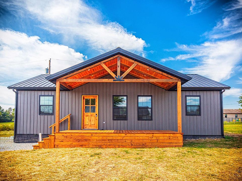 Step into this beautifully crafted brand-new home featuring 3 spacious bedrooms and 2 full baths. The open-concept layout is perfect for modern living, with engineered hardwood flooring flowing seamlessly through the kitchen and living room. The kitchen is a true showpiececomplete with all appliances, rich wood cabinetry, butcher block countertops, a large island, and a stunning gold farmhouse sink. The primary suite offers comfort and style with wall-to-wall carpet, a walk-in closet, and an adjoining bathroom featuring a tile floor and a quartz-top vanity. Enjoy the outdoors on the beautiful covered front porch or relax on the back deck. A separate utility room with tile flooring adds convenience to everyday living. Don't miss your chance to own this thoughtfully designed home blending function, charm, and modern finishes!