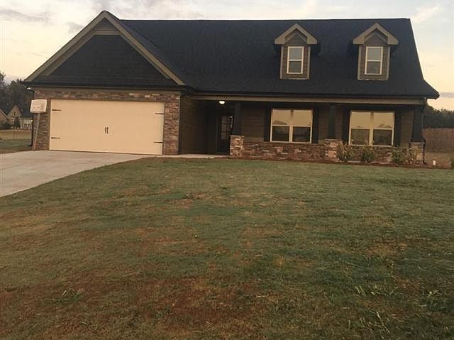 Craftsman style 4 bedroom, 3 bath, bonus room located on a .86 acre lot, granite kitchen countertops, custom built cabinets in kitchen and baths, large open 2 story greatroom with stacked stone wood burning fireplace, wall to wall carpet, large master suite with walk in closet, master bath has double vanity, garden tub and separate shower, rocking chair front porch, patio, 2 car garage, warranty, seller will contribute up to $4000 towards closing cost with use of a preferred lender only. Pho...