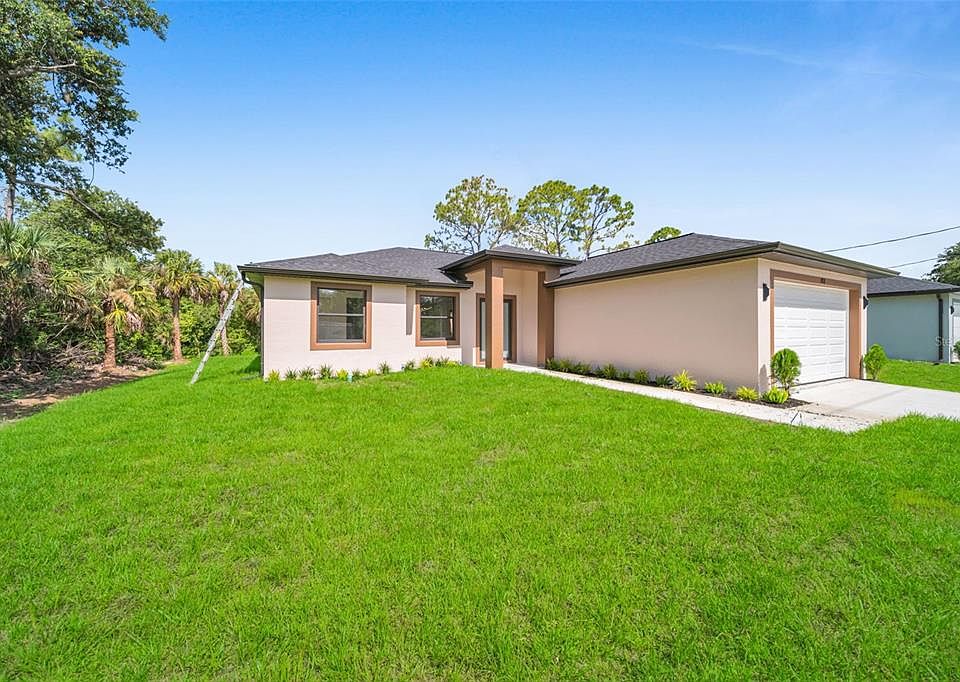 Brand-New 2025 Construction in Port Charlotte! Beautiful 3-bedroom + den, 2-bath home with a bright open floor plan and modern finishes throughout. Enjoy a stunning kitchen with white shaker cabinets, quartz-style counters, stainless steel appliances, and a spacious island. The home features sleek oversized tile flooring, elegant lighting, and a luxurious owner’s suite with double vanities and a large walk-in shower. Additional highlights: Den/office space Indoor laundry 2-car garage