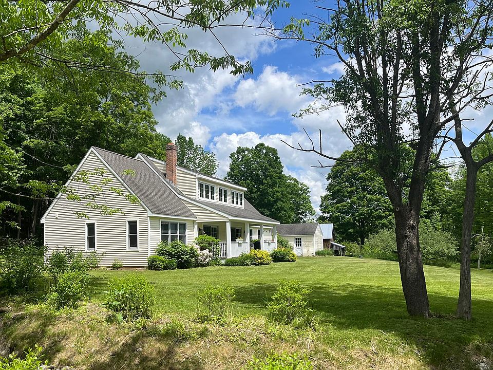 This charming, sunny cape is being sold fully furnished and is in turn key condition. 170' of River frontage, expansive lawn slopes down to the river, gorgeous landscaping and old growth maple trees. Inside, the house is drenched in sunlight from it’s sunny eastern exposure. Large eat in kitchen, living and dining area with a wood burning fireplace, also features a 16 foot expanse of sliding glass doors that open to a delightful covered porch. Mudroom, powder room, laundry, office and a large primary bedroom suite are all on the first floor for easy living. From the two-story entry foyer, a graceful staircase leads to the second floor with two more bedrooms, a shared bath and attic storage space. Detached two car garage. An on-site septic system is fully maintained by the town of Warren. The house is not in the flood plain and has no history of flooding. This is a prime Warren Village location and won't last long! Showings begin Friday June 14th.