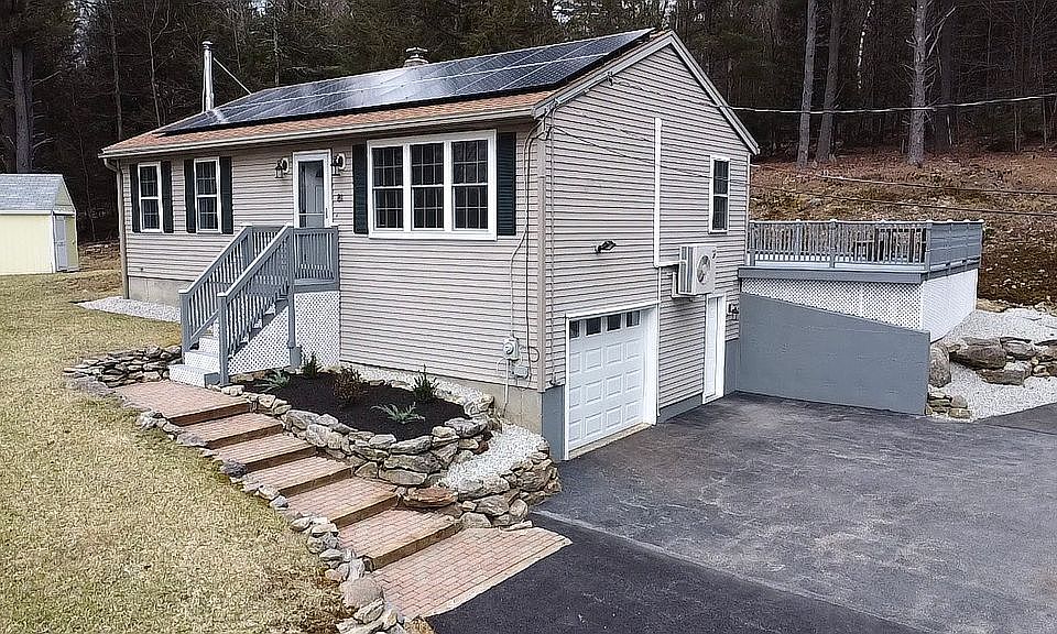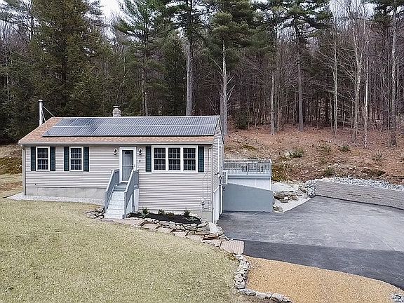Owner Andrew Turilli 603-921-8125 Here you’ll find an energy efficient and aesthetically pleasing two bedroom and one bathroom home. Enjoy beautiful sunsets every evening over the mountain view. Full house solar system installed in 2017, which provides an $18,000 tax deduction. You’ll find acres of woods surrounding the property with farmland across the street. Newly installed landscaping and hardscaping. Freshly paved driveway and drainage. The oversized deck overlooks it all! Walk into the front door to a beautiful open concept setting. Newly updated kitchen includes new tile floors, stainless steel appliances, and marble countertops. LED lighting and fixtures upgraded throughout the entire house. Smart dimmer switches can be controlled from your smartphone. Full bathroom has been updated with new tile, toilet, and vanity. A mini split heat and central A/C system will heat and cool the home. There is also an updated oil burning forced hot water furnace. A wood burning stove can be another source of heat located in the basement. Washer and dryer are included. One bay garage with extra bay space. This stunning, turn key, move in ready home will not disappoint! Schedule a tour today!