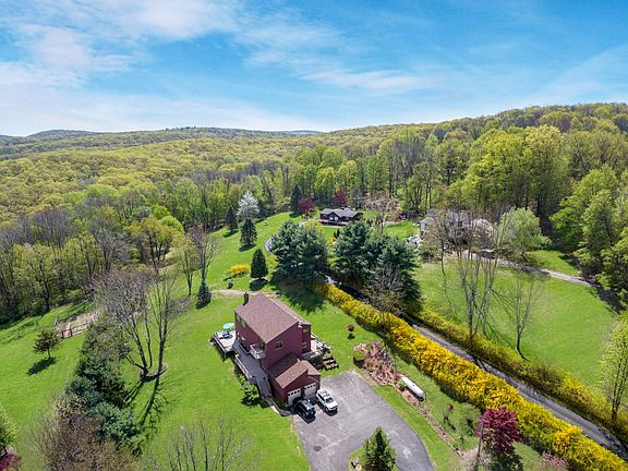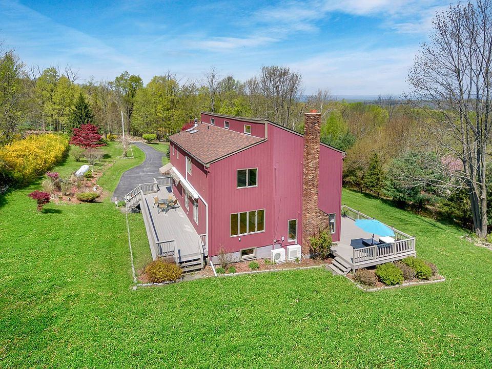 Dramatic contemporary in a gorgeous setting with views to swoon over. Beautifully maintained spacious home, just made for entertaining. Large, well-proportioned rooms with soaring ceilings, sparkling hardwood floors, a light and bright, sunshiny home. Wraparound decks & walls of windows extend the inside out to embrace the mountain views. Easy flow from room-to-room, a marvelous sense of space throughout. A house made for family and friends with its inviting brick fireplace, hard-carved wet bar, huge eat-in kitchen and family room overlooking the living room. Master suite with a sitting area and private balcony. Peaceful, private location on a no-outlet street just 3 miles outside the charming Village of Warwick, with its vibrant community of cafes, restaurants, galleries and boutiques, historic homes and landmarks. So much to see and do with cideries, breweries, wineries, farmers markets, skiing, hiking and biking all around, and within easy reach of commuting lines and highways.