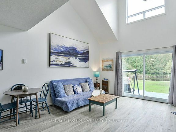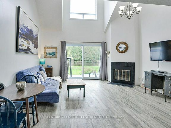 Embrace the Lakeside Lifestyle Today! Step into this Stunning Waterfront Tudor-Styled Loft Nestled in the Picturesque Lagoon City, Offering Boat Mooring & Access to the Breathtaking Lake Simcoe & the Trent Severn Waterways. The Open Concept Layout Boasts a Modern Kitchen, Inviting Dining Area, & a Living Room that Opens onto a Spacious Waterside Deck, Providing Unparalleled Views of the Water & Lush Woodlands. Revel in the Tranquility of the Main Floor Bedroom, Adorned with a Modern Vaulted Ceiling & Flooded with Natural Light from the Upper Sky Window. With Year-Round Activities such as Walking Trails, Boating, Fishing, Snowmobiling, & Pickleball, as well as the Amenities of the Lagoon City Yacht Club, Community Centre & Restaurants, this Lifestyle Offers the Perfect Blend of Relaxation & Adventure.