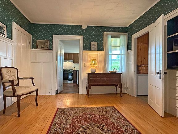 One of several stately properties on Main Street, this 1847 Gothic Revival-style home can be found on both the Vermont and National Registers of Historic Places. Original charm remains throughout, with features such as gingerbread house-like cornices, wide trim and moldings, and nearly 9-foot ceilings in the main living areas. Enter through the spacious front porch into an entry area, which offers access to a large closet and laundry room. The kitchen lies beyond and includes a Hearthstone gas heating stove, entry to attached cold storage areas, and two enclosed porches that offer eastern views of the large yard. A large living room with hardwood flooring sits at the front of the home, and the formal dining room is situated in the middle with the stairway to the 2nd floor. A first-floor bedroom with an en-suite bath completes this level. The second floor offers a flexible layout with two bedrooms currently combined into a large single room (easily divided again), an additional bedroom, a ¾ bath, a bonus room, and surprisingly large closets. With over 2,300 square feet, the layout can be adapted to suit a variety of needs—all on a 0.82-acre lot in the heart of the city. The current owners have updated the old knob-and-tube wiring throughout the home and installed a new boiler. Looking to live and work on site? The Residential/Limited Business District zoning allows for conditional uses such as offices, professional studios, and more. Be sure to view the 3D virtual tour!