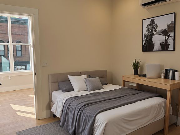Available Now-Second floor one bedroom. Walk into an open modern kitchen and living room with wood floors, high ceilings, ceiling fan and gorgeous large windows with beautiful views of downtown Florence. The kitchen has granite counters, large kitchen island, ample cabinet space, brand new appliances, stove with external vented range hood system and gorgeous lighting fixtures. Bedroom has high ceilings, nice sized closet and ceiling fan Large full modern bathroom with tiled walk-in shower. Unit has a stackable washer and dryer. Fiber optic and cable connection available to be installed. Tenant responsible for electricity. Included in the rent trash removal, recycling, snow removal, lawn care, water and sewer. Cat and dog 10lbs and below considered, no smoking. Listing 3297 Lease until August 2026/Negotiable