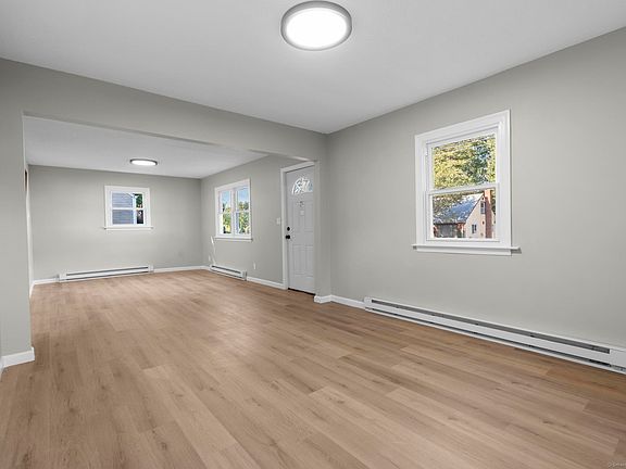 Welcome to this beautifully renovated 4-bedroom, 2 full bath Colonial, perfectly situated on a charming level lot in a quiet, highly desirable neighborhood. Every detail of this home has been thoughtfully designed and finished to perfection. Step inside to find a spacious layout featuring fresh vinyl plank flooring throughout, stunning cabinetry with granite countertops, brand-new stainless steel appliances, and modern, stylish fixtures. Both bathrooms boast clean, contemporary finishes, including a beautifully tiled shower. Upstairs, the primary bedroom is truly massive, offering ample space and comfort, accompanied by three additional sizable bedrooms. Fresh paint throughout creates a bright and inviting atmosphere, making the home completely move-in ready. Energy-efficient baseboard heating and an on-demand tankless hot water heater provide modern comfort and convenience. This home blends timeless Colonial charm with tasteful, modern upgrades-designed to impress and ready for its brand-new owner.