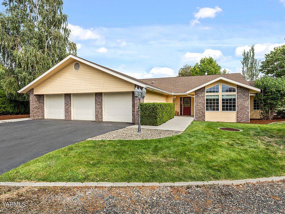 Tucked at the end of a quiet cul-de-sac in Gleed, this well-kept one-level home offers 2,194 sq. ft. of comfortable living space on a generous .63-acre lot. Built in 1996 and lovingly cared for by only two owners, the home features 3 bedrooms, 2 bathrooms, and a 3-car garage.Inside, a dual-sided fireplace warms both the living and dining areas, creating a welcoming flow. The backyard is a true retreat, complete with a pond and two waterfall features, perfect for outdoor relaxation or entertaining. Adding to its appeal, the property includes its own secure storage unit in a gated nearby facility--a rare bonus.Move-in ready and surrounded by the natural beauty of the Yakima Valley, this property combines space, privacy, and charm in one desirable package