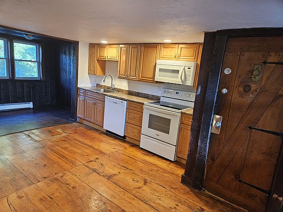 This apartment has a double living room large decorative (non functional, will not be permitted to light fires) brick fireplace, antique post and beam living spaces, this house was built in the late 1700's, antique farm house look.