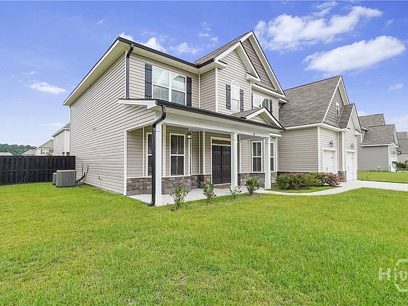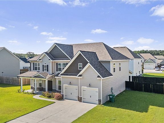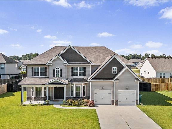 This spacious five-bedroom, four-bath home combines comfort and convenience, offering a cozy loft upstairs perfect for relaxation. Large windows throughout the home invite an abundance of natural light, creating a bright and airy atmosphere. The kitchen flows seamlessly into the living room and a covered porch with privacy fencing, making it ideal for entertaining or enjoying tranquil moments outdoors. Generous-sized bedroom and full bathroom downstairs provide convenience and ample living space. A separate office flex space and dining room downstairs. Upstairs, the large primary bedroom features a matching large ensuite bath, another guest bedroom with ensuite bath along with two additional bedrooms and the fourth full bath. This home has an abundance of storage space and flex rooms/space for plenty of living options. Very convenient location to Hyundai Metaplant and LG EV plant.