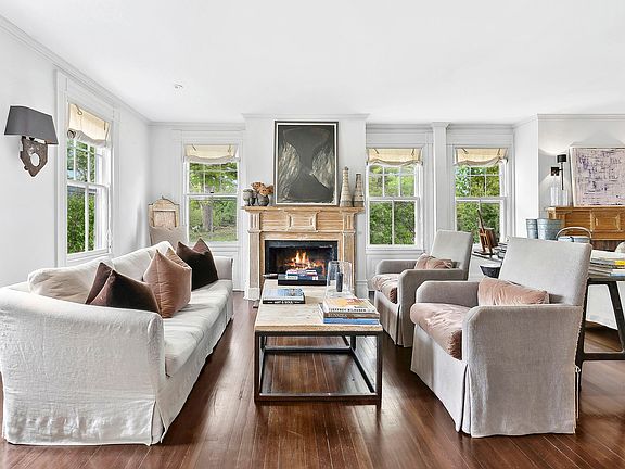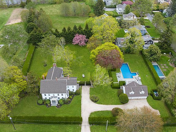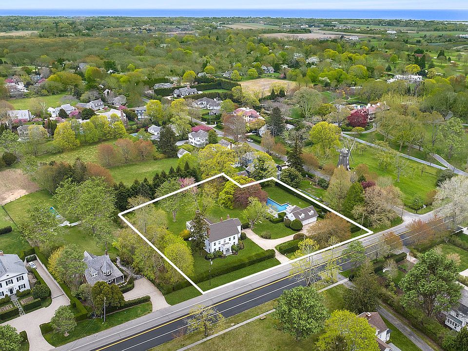 Positioned in a sought-after south of the highway location with close proximity to Bridgehampton Main Street and pristine ocean beaches, this turnkey property embodies timeless elegance with a multitude of desirable amenities. Originally built by the Hildreths, one of the area's founding families, the 19th century gem has preserved its historical significance throughout each stage of renovation. Featured in Architectural Digest, the estate is presented as a serene sanctuary with interiors encapsulating a rich heritage and sophisticated living. Boasting an impressive layout, the residence offers an abundance of space and comfort with six bedrooms, four full bathrooms, and two half bathrooms. Encompassing 4,800 +/- square feet on the first and second levels, the dwelling features multiple sitting areas, along with six fireplaces which help to create an inviting ambiance for all types of entertaining. The spacious kitchen affords top-of-the-line stainless steel appliances, an island, separate pantry, and breakfast space leading into the formal dining room. A neighboring sitting area offers access to the screened-in porch with a functional fireplace and views across the meticulously landscaped backyard, while a separate den allows for an additional entertainment space. Within a privately located section of the residence, there is a wet bar, kitchenette, and wine fridge, along with a secondary staircase providing entry to the upstairs. Ideally set on the second level, the primary suite includes multiple closets, a wood-burning fireplace, spacious bathroom with freestanding tub, shower and double sinks, and a private terrace overlooking the backyard. Along with the main residence, this expansive 1.41 +/- acre parcel encompasses an oversized detached 4-car garage with a finished second level including a living area, full bathroom, and rear-facing terrace. Adjacent to the garage is a 20' x 50' gunite saltwater pool with surrounding patio area for lounging and dining. The opportunity affords multiple scenarios for expansion and improvement including the ability to finish the 3rd floor of the main residence as well as convert the rear 4th bay in the garage to a pool house. Presenting a prime and convenient setting, this notable yet private opportunity showcases impressive features with a coveted address on Ocean Road.
