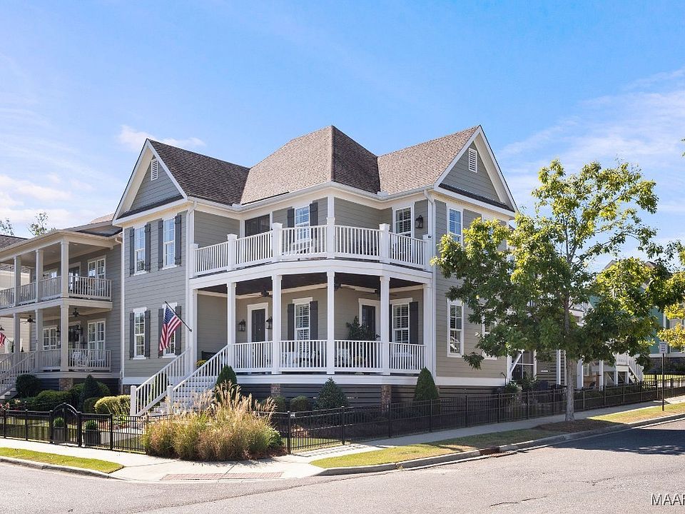 Welcome to this stunning one-owner home at The Waters in the Town of Pike Road—a professionally designed, former Parade of Homes model that captures timeless beauty and everyday comfort. Perfectly positioned on a picturesque corner lot near the Blue Heron Pool Club, this home enjoys peaceful views of Lake Cameron and the surrounding streetscapes. Double front porches invite you to relax and take in the scenery, while every inch of the home reflects meticulous care inside and out. Step inside to find an abundance of natural light streaming through large windows finished with plantation shutters, enhancing the open-concept great room centered around a cozy fireplace. The dining room features a stylish accent wall, and the kitchen, living, and dining spaces flow seamlessly together for entertaining and family living. Engineered hardwood flooring extends throughout the main living areas, with tiled bathrooms adding durability and elegance. The private owner’s suite offers a retreat of its own with a luxurious bath, while the upstairs layout includes an additional living space, three bedrooms, and two bathrooms—perfect for family or guests. Outdoor living shines here, with a spacious screened porch overlooking the beautiful streetscapes, plus a firepit area and built-in grilling space surrounded by lush landscaping and a fully fenced yard. An incredible bonus is the separate 424-square-foot apartment built out in 2024, featuring its own entrance, parking pad, complete kitchen, living area, bedroom, and bath with a stackable washer/dryer—ideal for guests, family, or short-term rental income. From its magazine-worthy interiors to its thoughtfully designed spaces, this home perfectly embodies The Waters lifestyle—charming, connected, and effortlessly elegant. Now is your chance to own this well loved, iconic home on the corner of Overbrook and Northlake streets. Make plans to tour it soon!