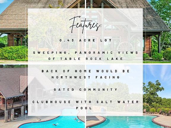 Build your dream home on this exceptional 0.43-acre lot in the prestigious Pinnacle Shores community, where luxury and lake life come together. Perfectly situated, the future home would face southeast in the front and open to the northwest in the back--offering you a front-row seat to breathtaking sunsets and dramatic storms rolling across Table Rock Lake. This gated community is designed for resort-style living, featuring a sparkling saltwater pool, a fully equipped fitness center, and beautiful spaces for special events and gatherings. Just minutes from Branson, Silver Dollar City, and endless lake activities, Pinnacle Shores offers the perfect blend of serenity and convenience. Don't miss this rare opportunity to create a custom retreat in one of the most desirable lake communities in the Ozarks.