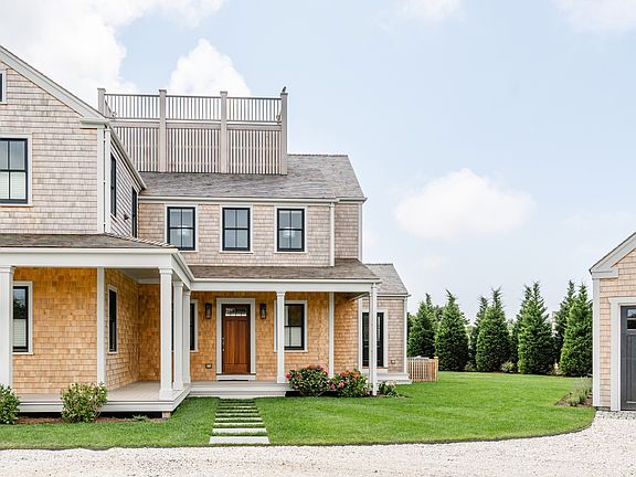 - A, AC, Ins, Irr, OSh, Floor 1: Welcome to this stunning home, where luxury and comfort come together seamlessly. As you enter from the charming front porch, you are greeted by a foyer that leads to the spacious living room, complete with two-story ceilings that create an airy and open feel. Step through the double-sliding doors onto the back porch and take in the beauty of the pool, patio, and beyond. The master bedroom suite is a true oasis, featuring a large bathroom with dual vanities, a water closet, a soaking tub, and a frameless glass shower with access to a private outdoor shower. The kitchen is a chef's dream, with ample counter space for meal prep, a Sub Zero refrigerator that is paneled to match the cabinetry, and a center island with a stone top and stool seating. The adjacent dining area is the perfect place to gather with loved ones, boasting a large picture window that offers stunning views of the pool, raised spa, stone fire pit, and lush lawn. Whether you're looking to entertain or relax, this home has it all., Floor 2: This spacious second floor features three bedrooms, including a stunning suite with a large walk-in closet and gracious bathroom. The two additional en suite bedrooms on this level boast vaulted ceilings, providing a sense of grandeur and elegance. Directly over the first-floor living room, a full-size set of stairs leads to an electric powered hatch to the roof walk. From here, you can enjoy sweeping views over Nantucket Harbor and the surrounding area.