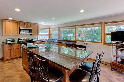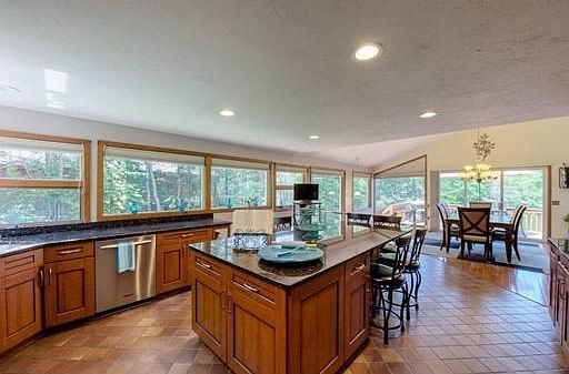 Come soak in the serenity of this beautiful Contemporary waterfront home located on Prindle Lake with 110ft of waterfront!! The nearly 2600 sq ft of living includes 4br & 2 1/2 baths is waiting to be filled with family and friends!! Main level features wonderful open kitchen w/shaker cabinetry, granite counters and oversized island that seats 6 table style. A spacious living/dining room features cathedral ceiling, soaring stone FP and large windows to enjoy lake views .Off the living room is the MB with FB, walk-in closet, loft and an additional FP. A separate Laundry rm leads to walk up attic. Lower level features another spacious family room w/walk out to the patio.3brs & FB. Outside has flexible space with a two tier deck for easy entertaining. Use the two car garage for your cars or boats~ A workshop anyone would enjoy! Roof is approx 15 yrs old, new pump in well, Buderus boiler with oversized water tank. Electric, kayaking, paddle etc.No gas powered boats!